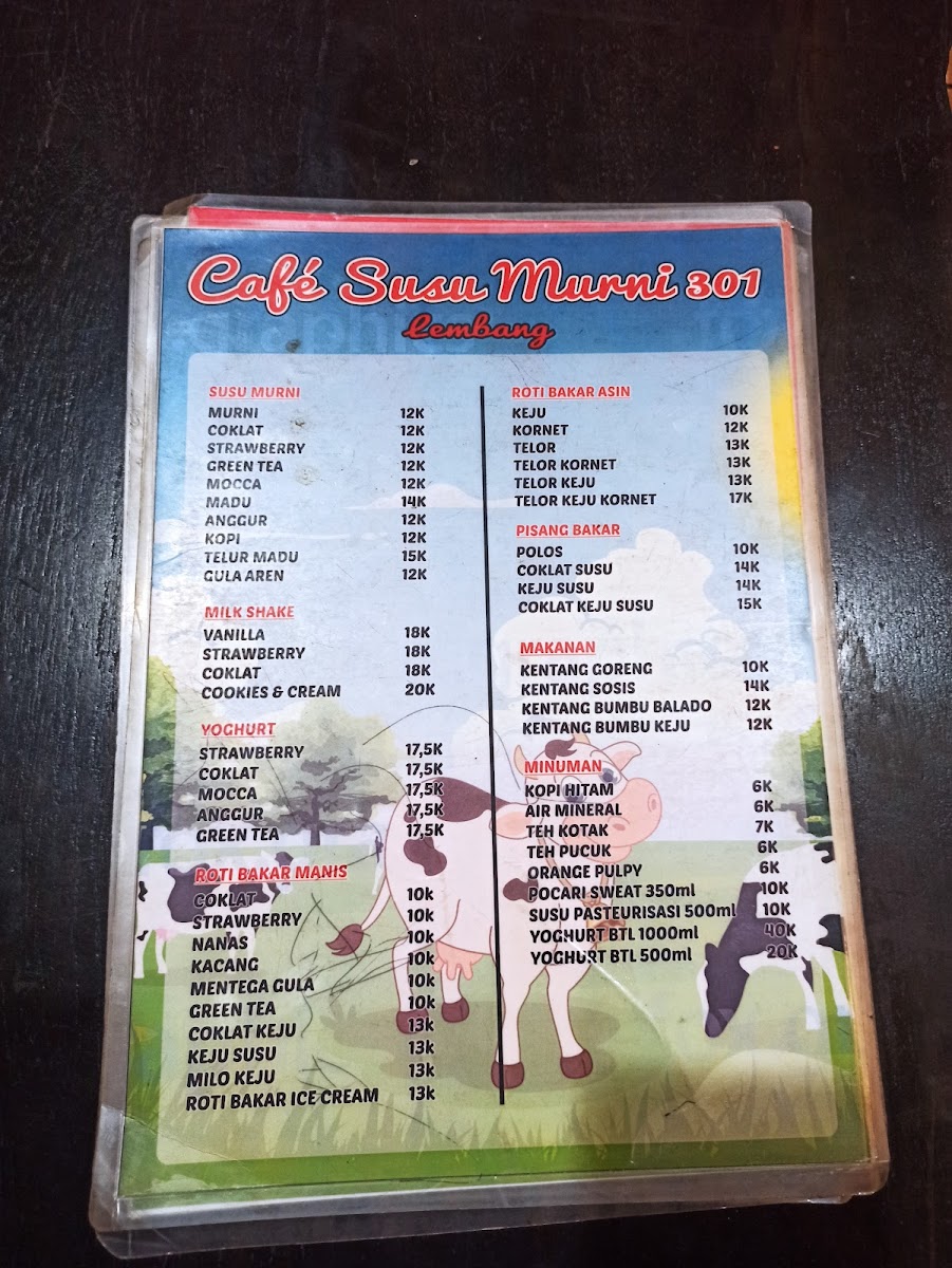 Nestled in the scenic Lembang region of Indonesia, Cafe Susu Murni 301 warms the heart with its delightful offerings. This cafe shines, particularly in its selection of pasteurized milk, expertly processed to retain its pure, wholesome quality while ensuring safety and freshness. Diners can indulge in an array of delicious options, with menu highlights featuring yogurt, toast, and the much-loved Bakso. Visitors rave about the varied and affordable dishes, making it an ideal stop for tourists and locals alike.